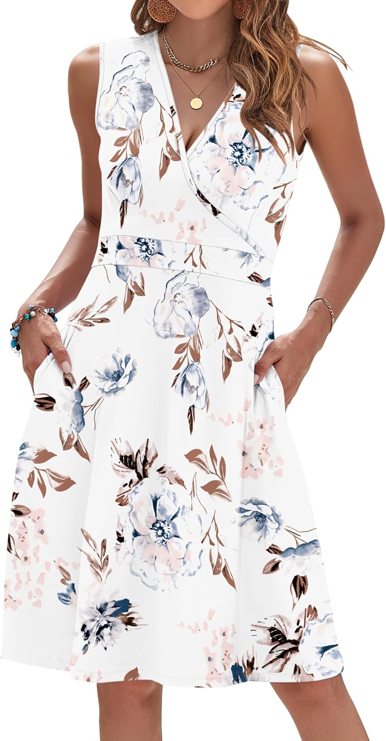 AUSELILY Womens Summer Dresses 2026 Sleeveless V Neck Wrap Floral Sundress with Pockets