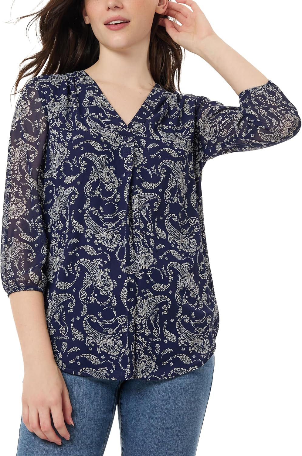 Jones New York womens 3/4 Sleeve Pleat Front V-neck Printed Tunic Top