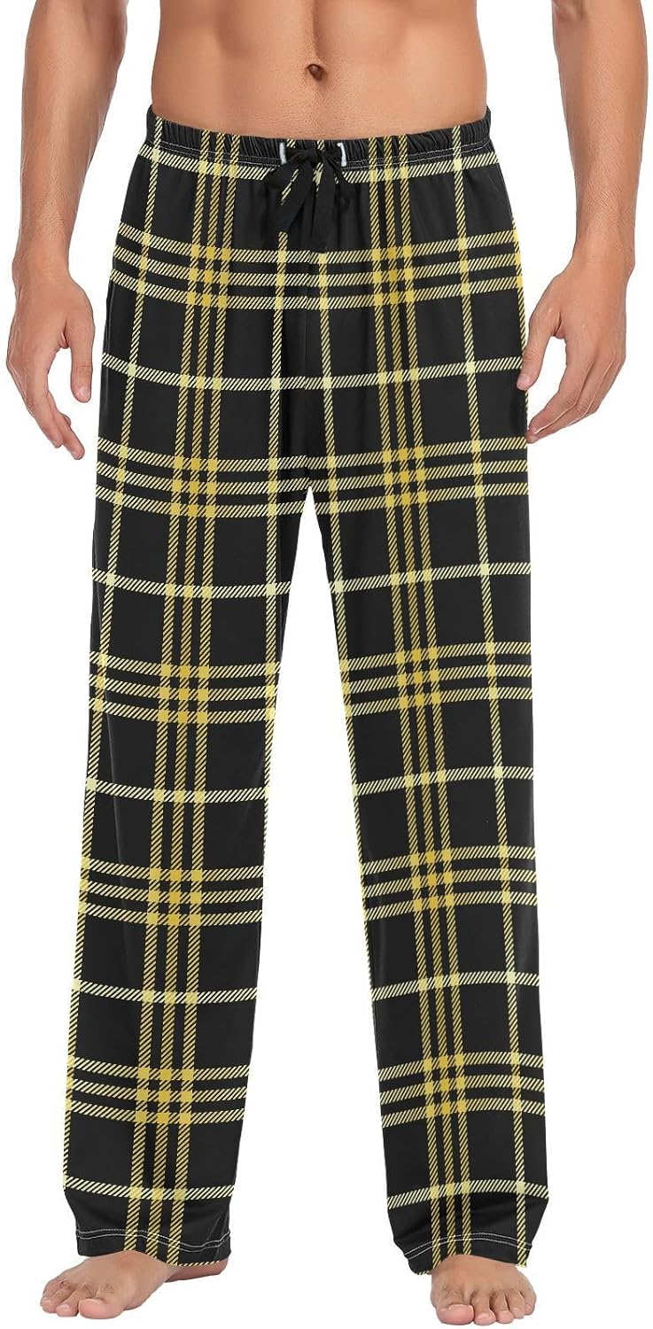 Pajama Pants for Men Yellow Black Buffalo Plaid Mens Pajama Bottoms Lounge Pants S