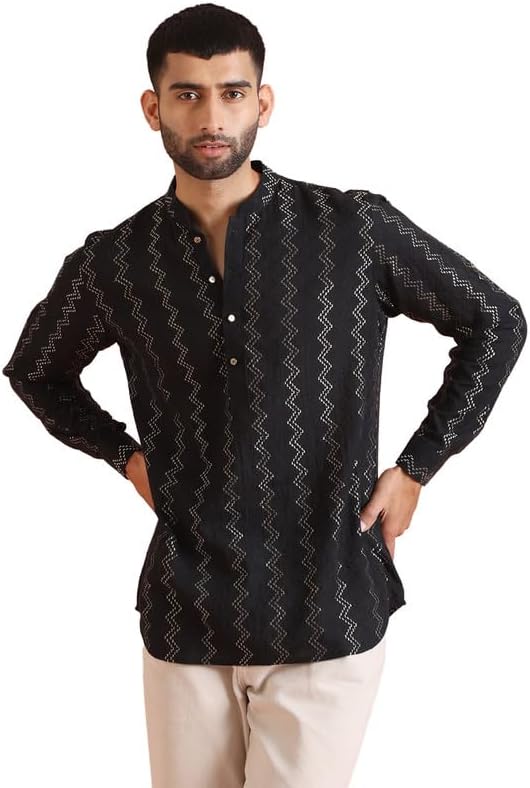 KISAH Henley Shirts for Men – Cotton Blend Short Kurta - Mandarin Collared Casual Shirt for Weddings, Yoga & Daily Wear