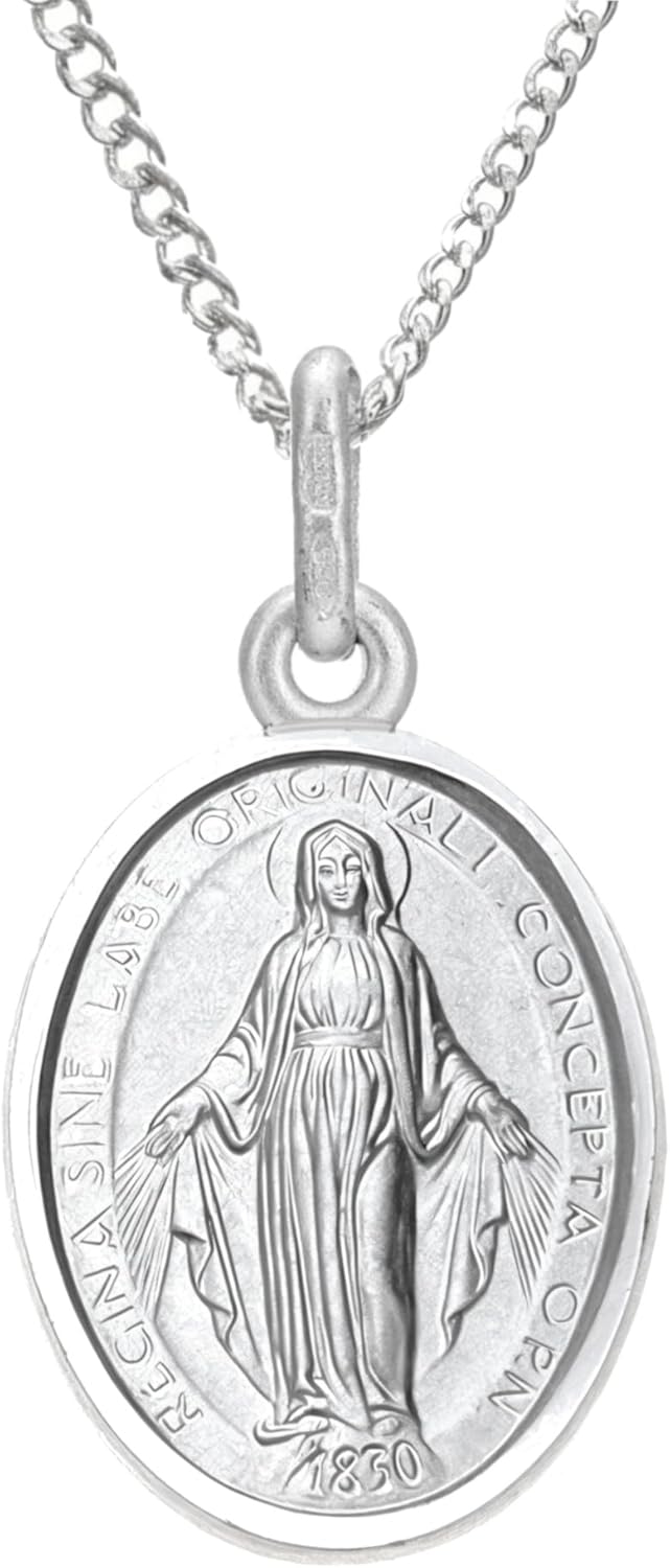 Alexander Castle 925 Sterling Silver Miraculous Medal Catholic Necklace - 14mm x 10mm Miraculous Medal with 18" Silver Chain & Jewelry Gift Box