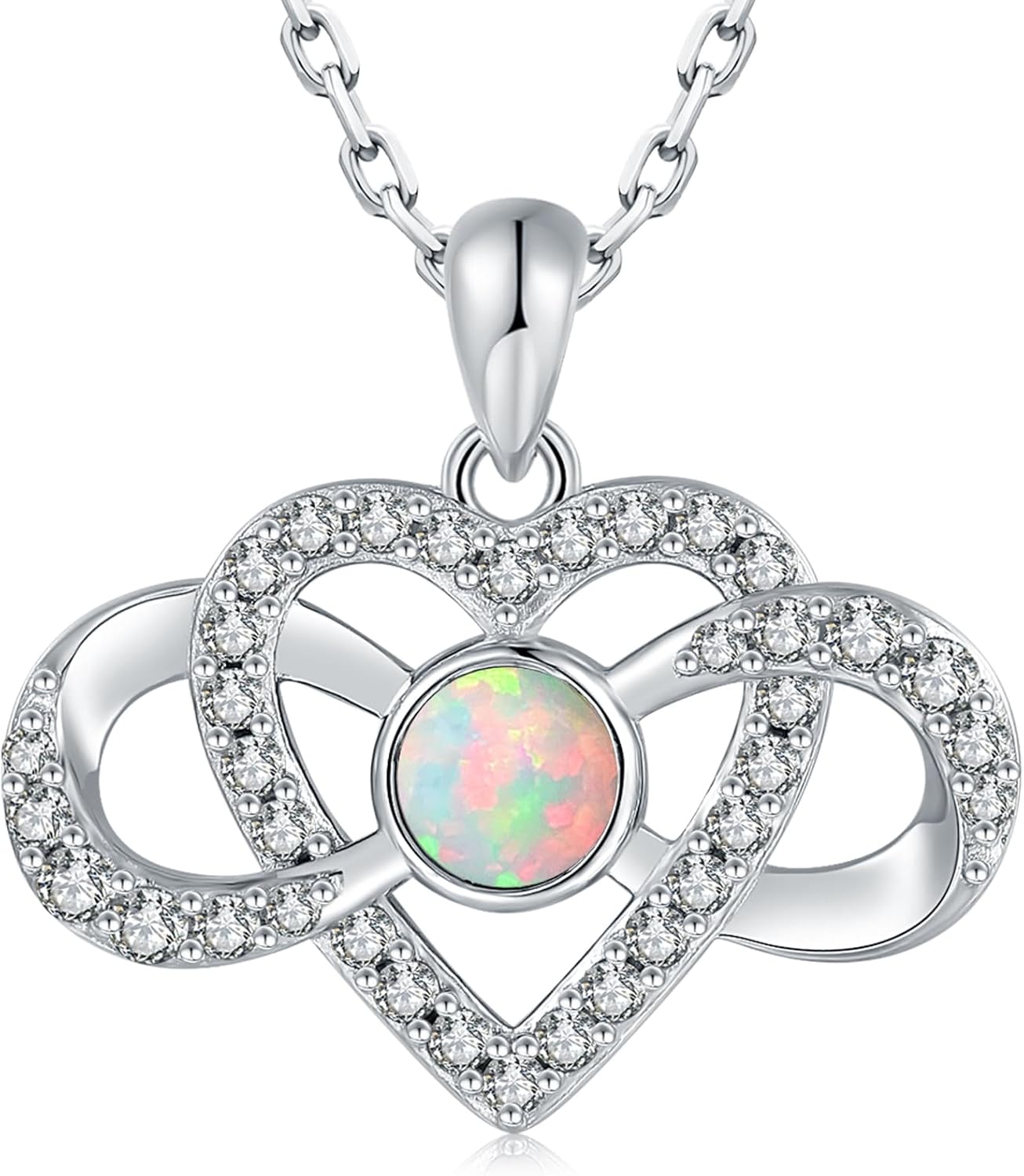 Infinity Heart Opal Necklace for Women – 925 Sterling Silver Love Pendant Jewelry, Gift for Mom, Wife, Daughter, Girlfriend, or Best Friend, 18" Chain + 2" Extender