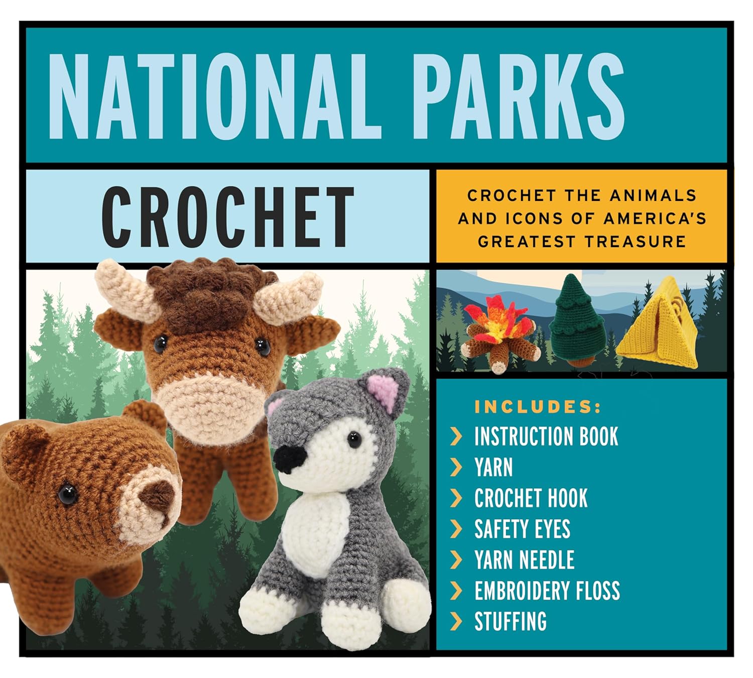 National Parks Crochet Kit: Crochet the Animals and Icons of America's Greatest Treasure - Includes: Instruction Book, 4 Colors of Yarn, Crochet Hook, Safety Eyes, Yarn Needle, Stuffing