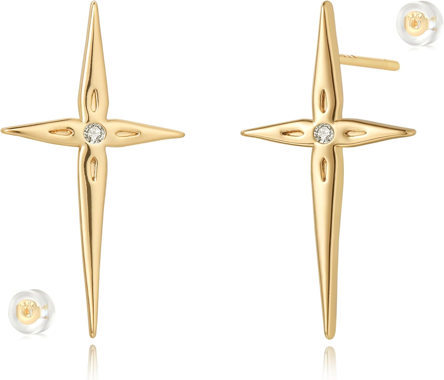 Cross Stud Earrings for Women Trendy 14K Gold Plated Sterling Silver Post Cubic Zirconia Cross Earrings Hypoallergenic Gold Jewelry Gifts