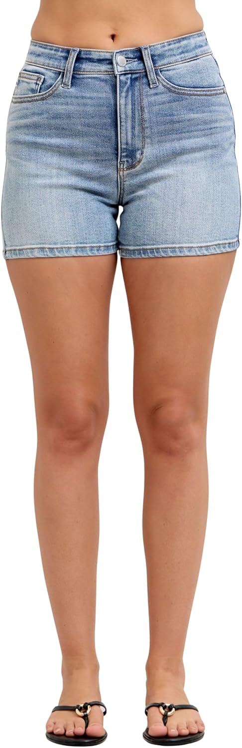 Judy Blue High Waist Light Wash Slim Fray Shorts