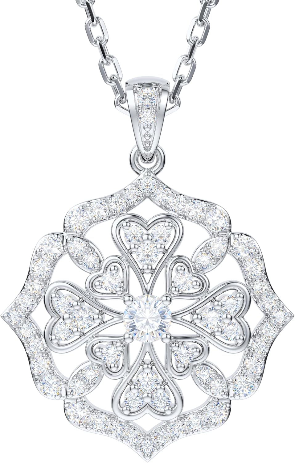 THELANDA Genuine Moissanite Sterling Silver Vintage Classic Clover Cross Flourish Pendant Necklace, Adjustable 18-20 Inch Chain with Lobster Clasp, Elegant Jewelry Gift for Women