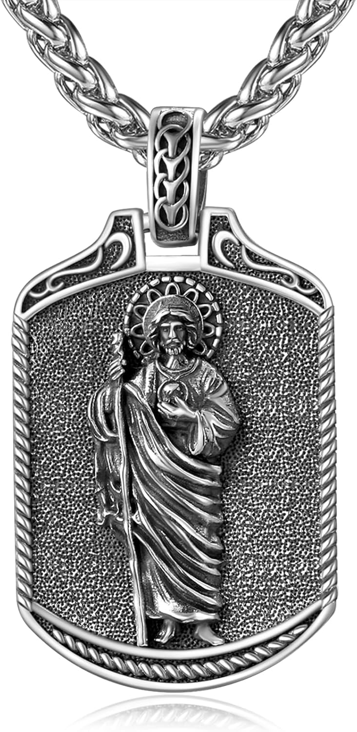 San Judas Necklace for Men Women 925 Sterling Silver St Saint Jude Necklace Religious Gifts