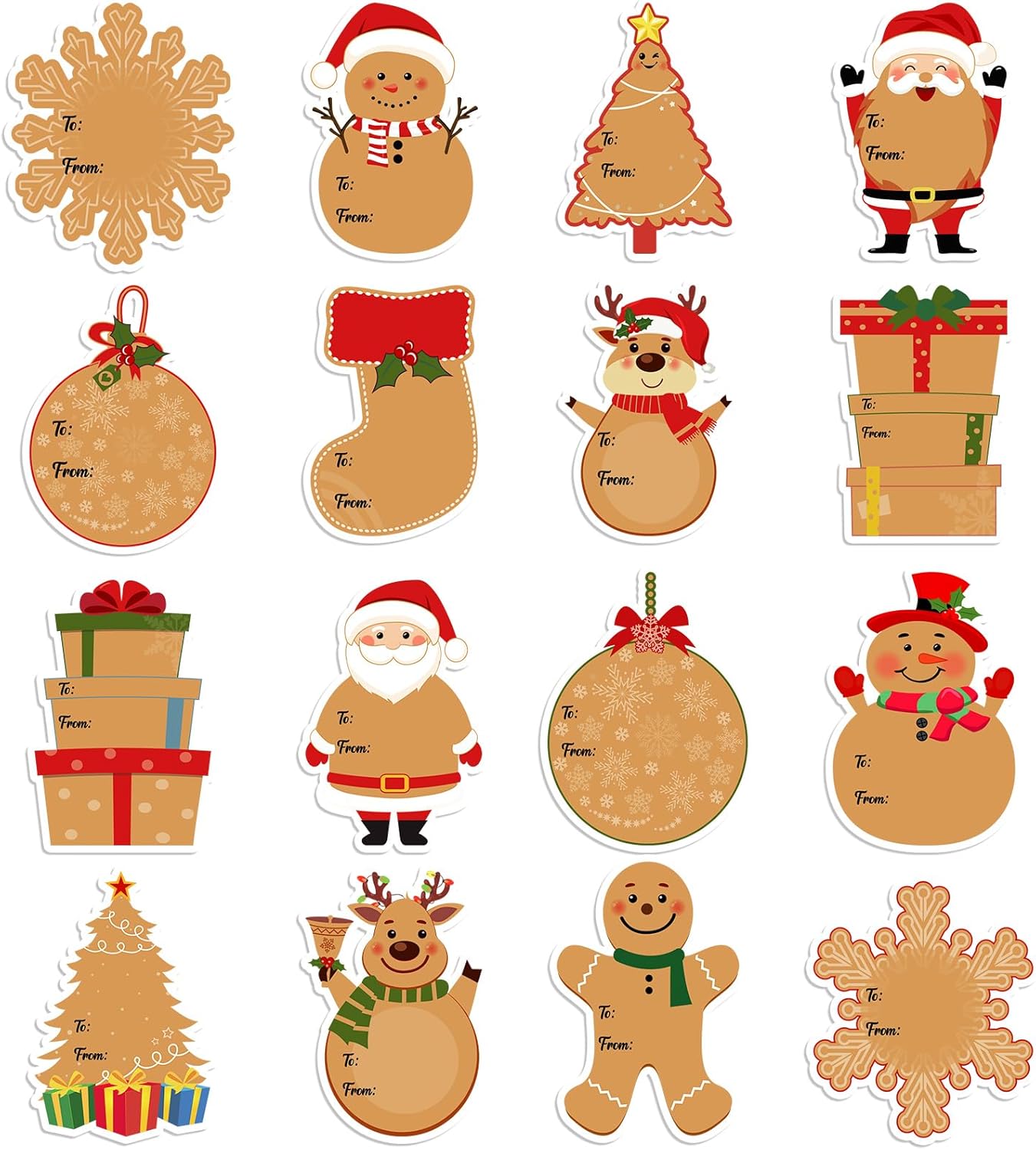 - Kraft Christmas Tags Stickers: Our Christmas name tags stickers are made of kraft paper material, which is relatively tough. Kraft paper has a vintage look and elegant touch, and with various Christmas patterns, they're built to last, not falling off easily, ensuring your tags will last as long as your gift does