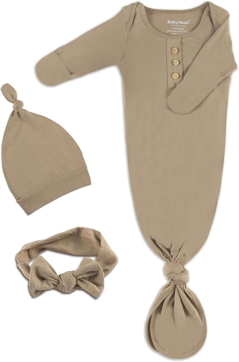 ![Newborn Baby Knotted Gown Extra Long, Super Soft Silky Infant Long Sleeve Sleeper with Tie Bottom, Baby Girl and Boy Sleep Bag with Mittens, Bow, and Hat Set Camel[Camel,Newborn] - Image 2](https://m.media-amazon.com/images/I/91n3SOvTdwL._AC_SL1500_.jpg)