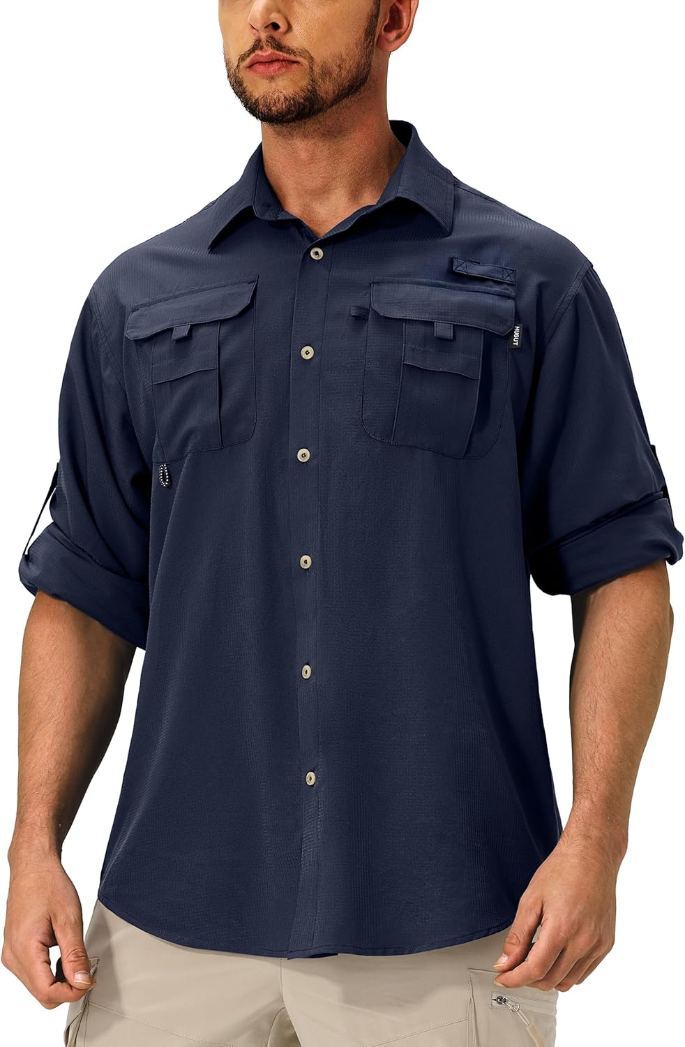 Men's Sun Protection Fishing Shirts Lightweight Long Sleeve UPF 50+ Travel Work Hiking Shirts with Pockets