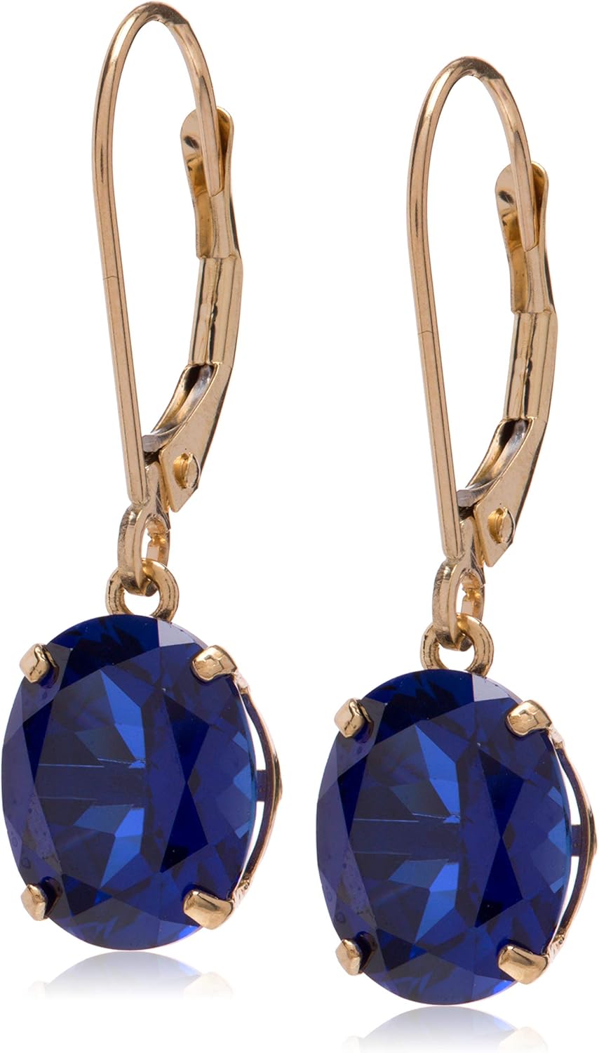 Amazon Essentials 14K White Gold Oval Gemstone Dangle Leverback Earrings