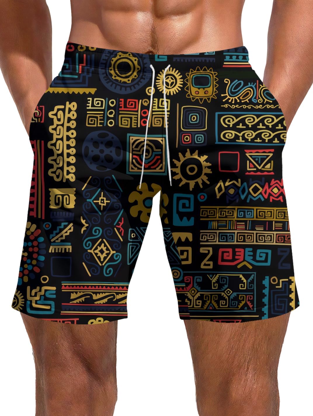 Mens Tropical Board Shorts for Summer Hawaiian Flowers Print Casual Vacation