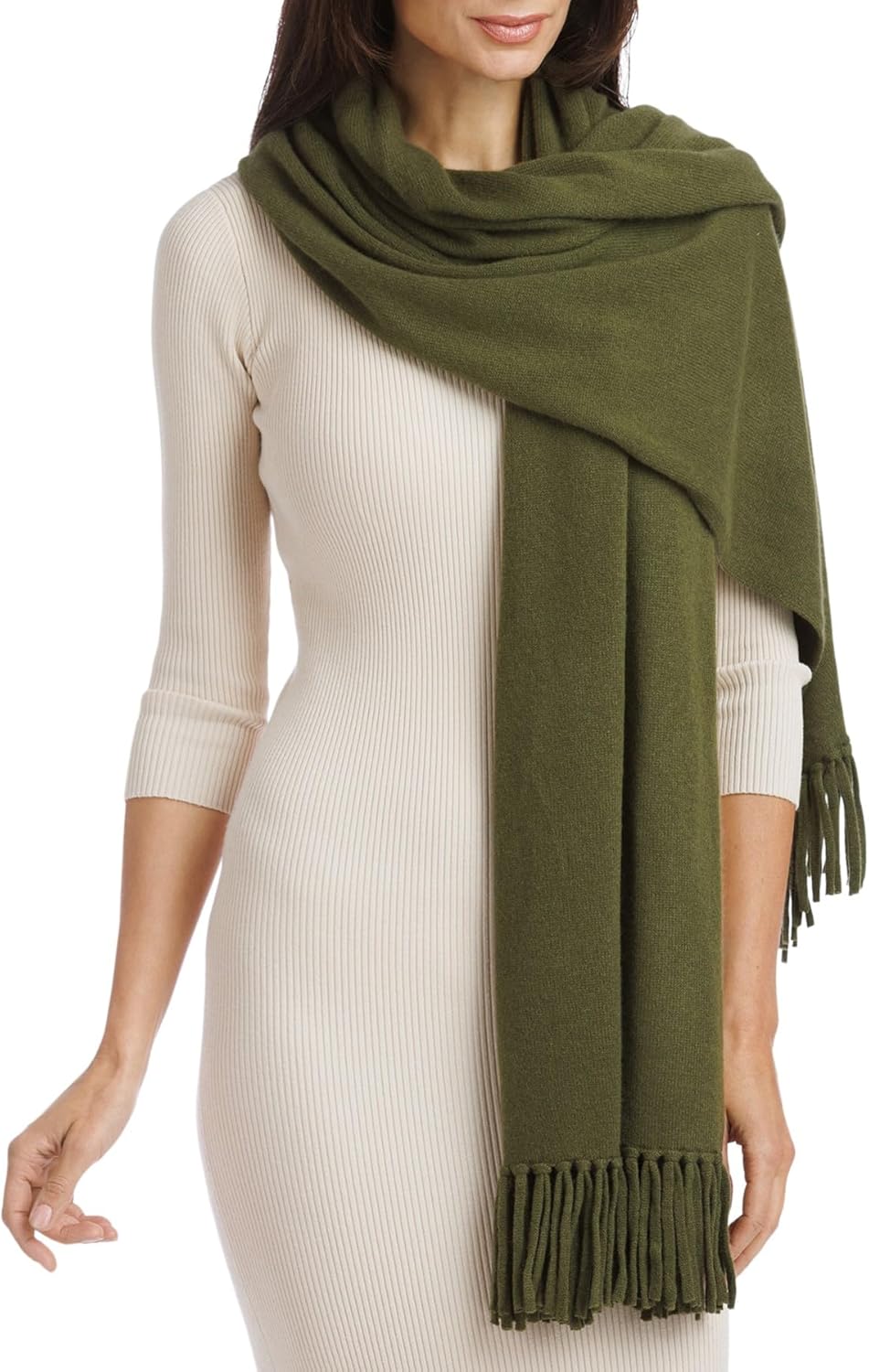 Fishers Finery Women's 100% Cashmere Knit Shawl Wrap with Fringe | Oversized 78” long by 28” wide