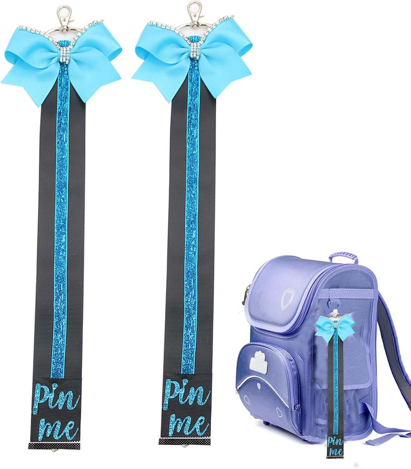 Cheer Pin Strap Pin Me Ribbon for Backpack Glitter Cheerleader Keychain Cheer Gifts Cheer Bow Pin Holder
