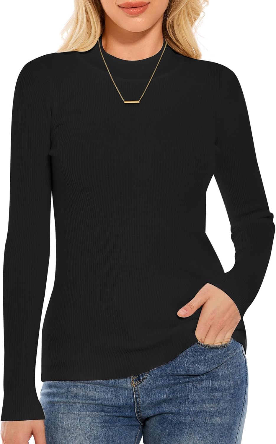 Womens Long Sleeve Mock Neck Sweater Ribbed Knit Top Mock Turtleneck Pullover Casual Fitting Jumper Sweater Top
