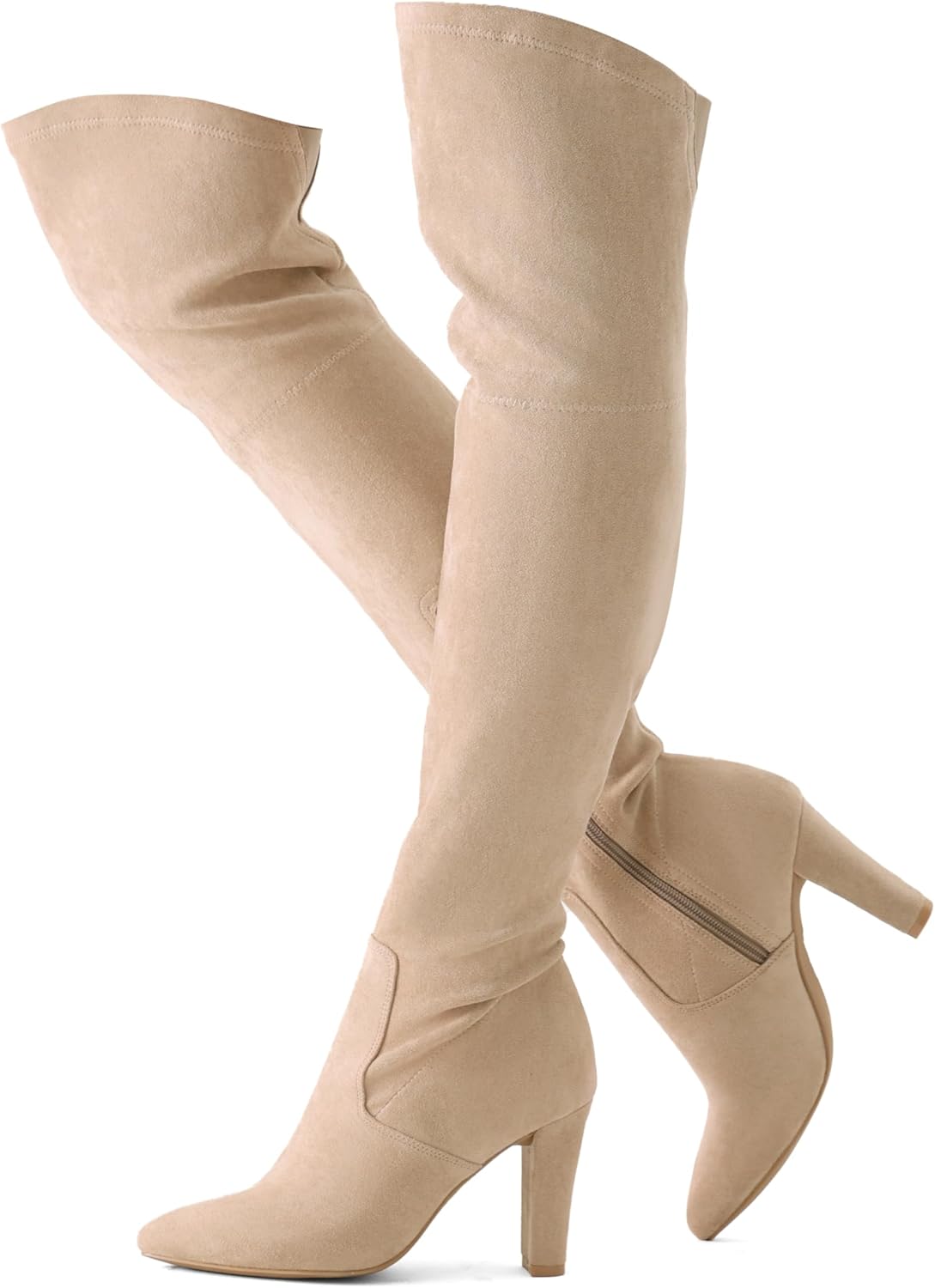 Shoe'N Tale Women Stretch Suede Chunky Heel Over The Knee Boots Thigh High for Women