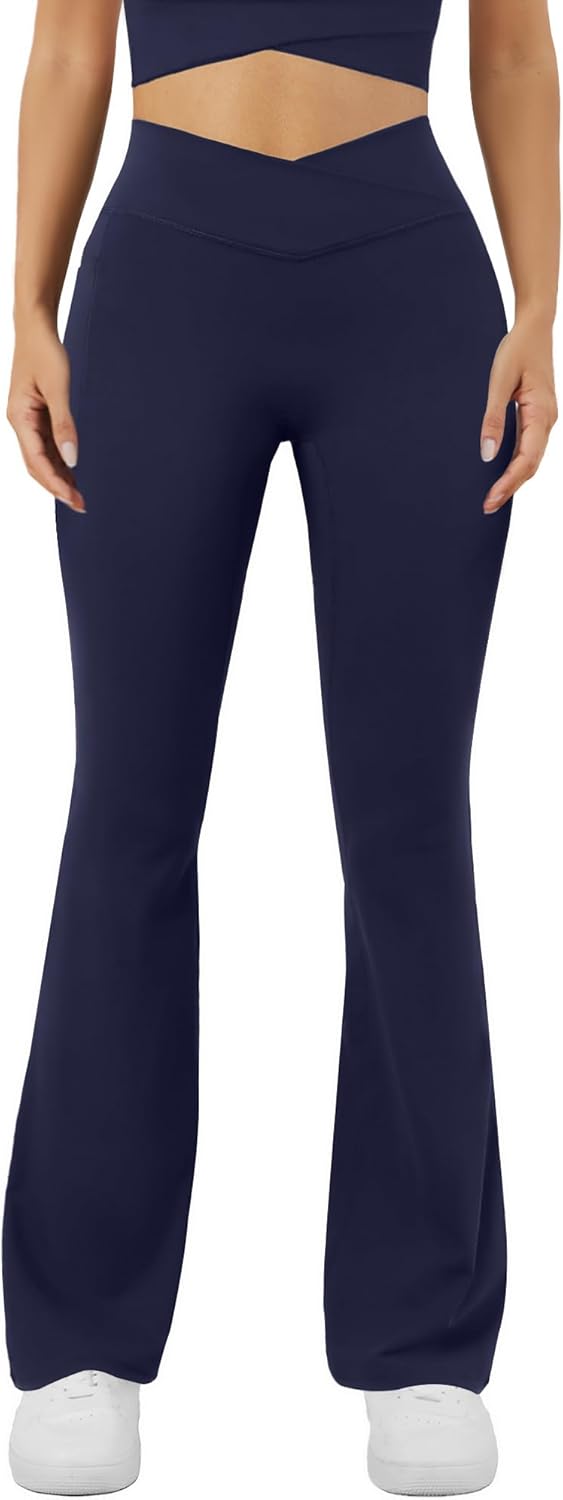 Women's Yoga Pants V Crossover Flare Leggings with Pockets Flared Bootcut Bell Bottoms Workout Pants Gym