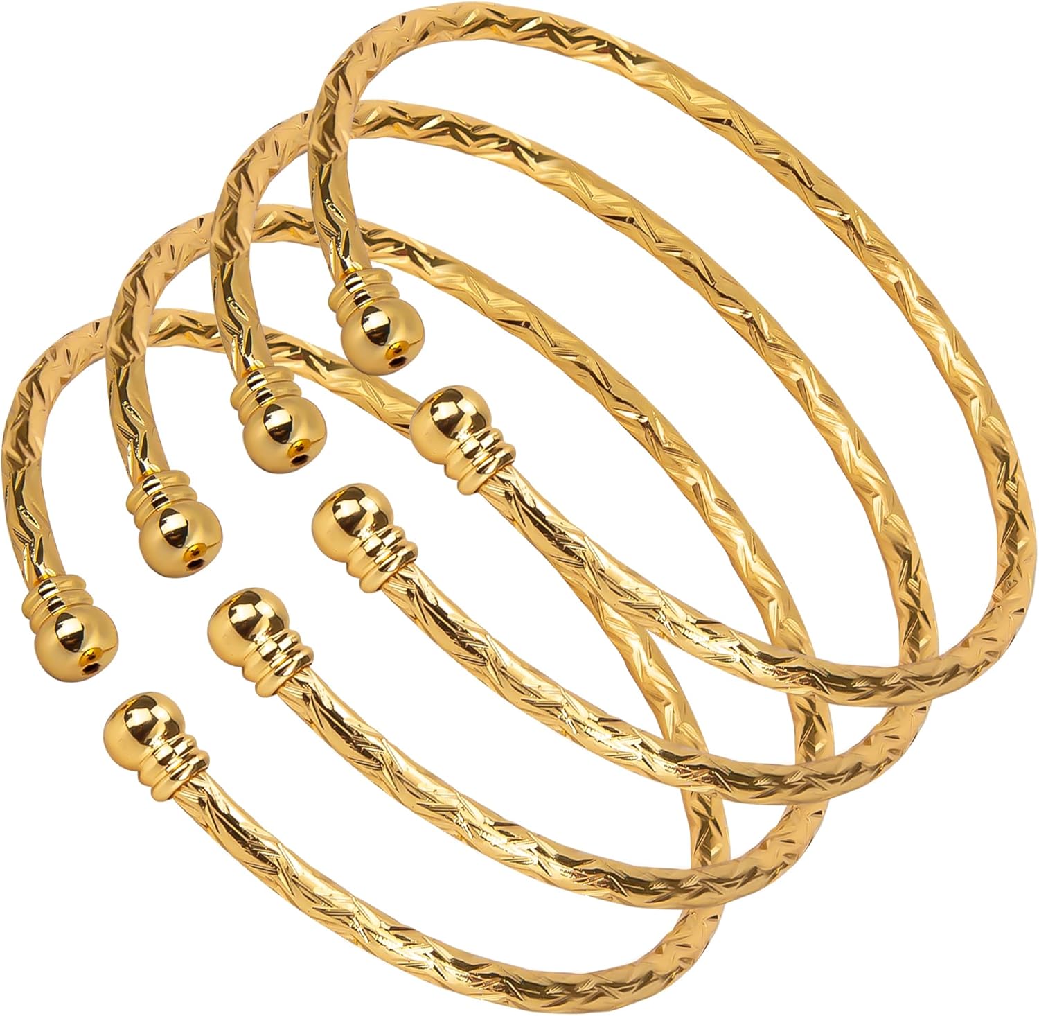 4pcs Bangles for Women Bracelets Jewelry FOR SMALL WRIST (5.5–7 inch), CUSTOMISABLE Unisex Simple Cuff Gold Platinum Plated Fine Fashion Open Bangle, Twisted Style, India Openable Arab Ethiopian Dubai Africa Gift