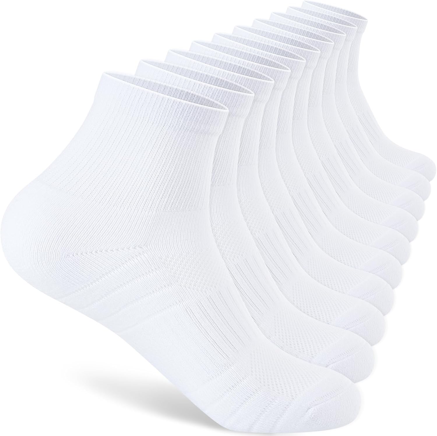 Mens 100% Cotton Cushioned Ankle Socks, Moisture Wicking Breathable Athletic Performance Running Quarter Socks