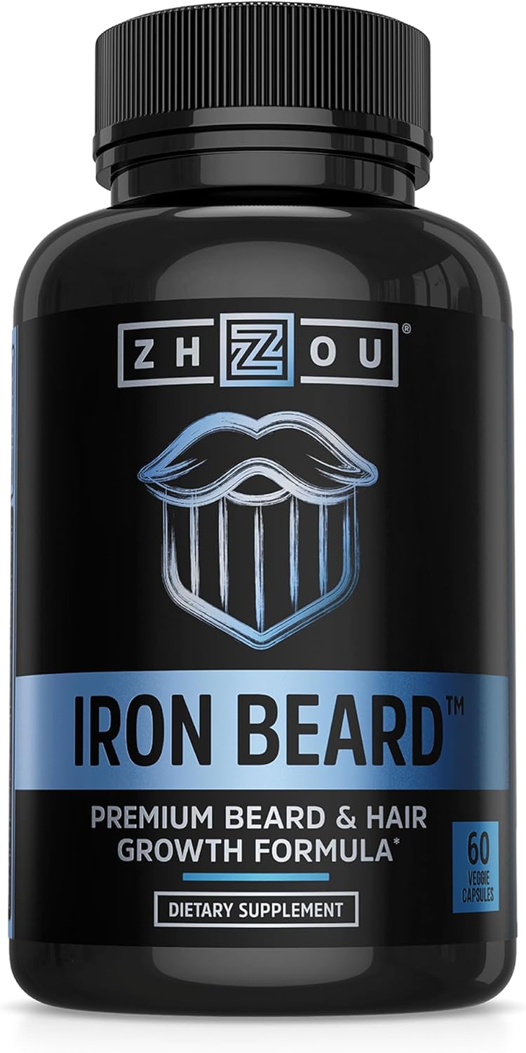 Zhou Iron Beard - Beard Growth Vitamins Men, Premium Biotin, Saw Palmetto & B Vitamin Pills to Support Facial Hair, Beard Care Supplement for Full Beard - 60 Veggie Capsules