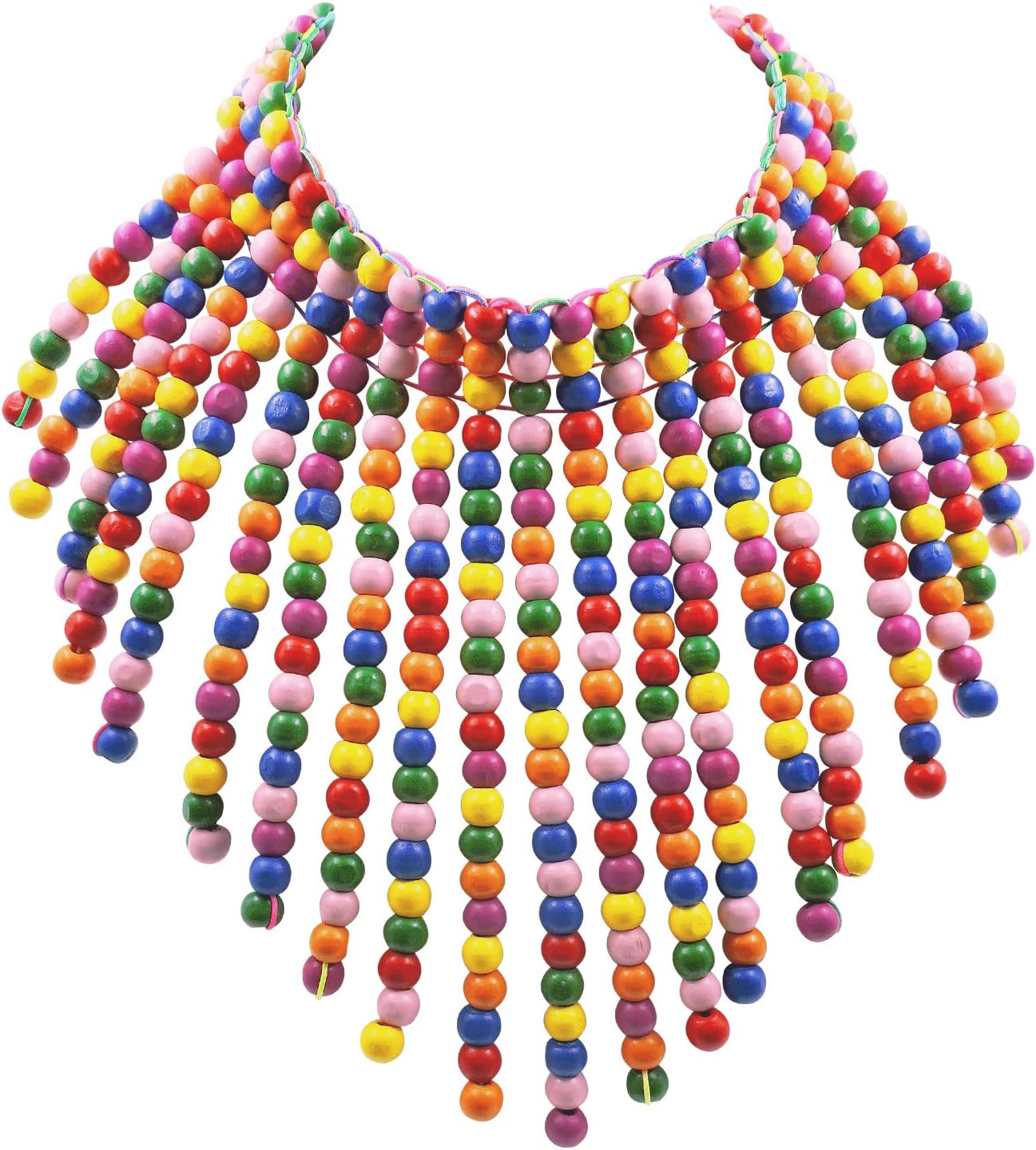 Boho African Wooden or Acrylic Beaded Bib Statement Necklace Strands Layered Cluster Chunky Collar Choker Wood Necklace for Women Fashion Costume Jewelry