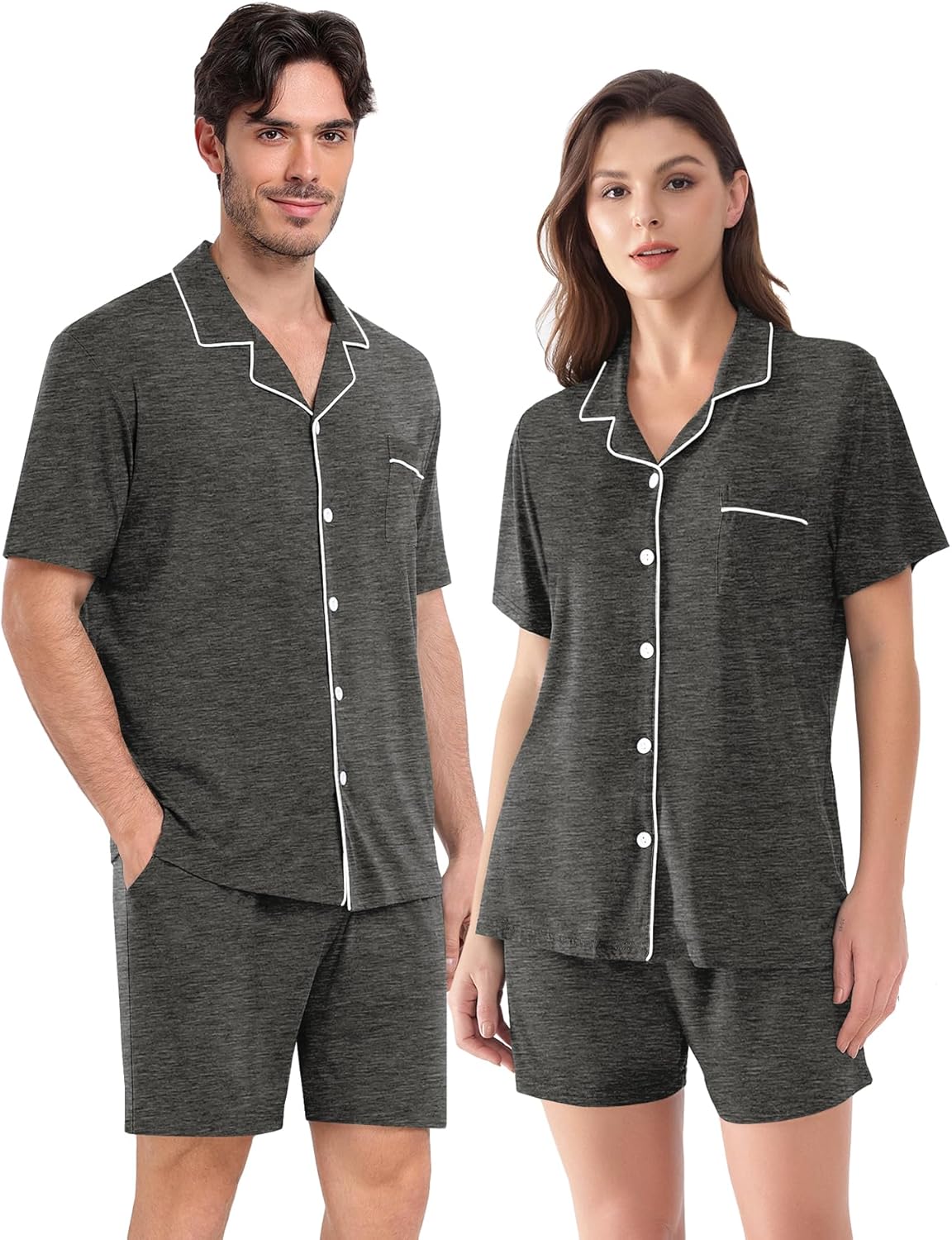 Matching Couple Pajamas Set, Cotton Button-Down PJs with Pocket, His & Hers Pajama Set, Gifts for Couples, S-XXXL