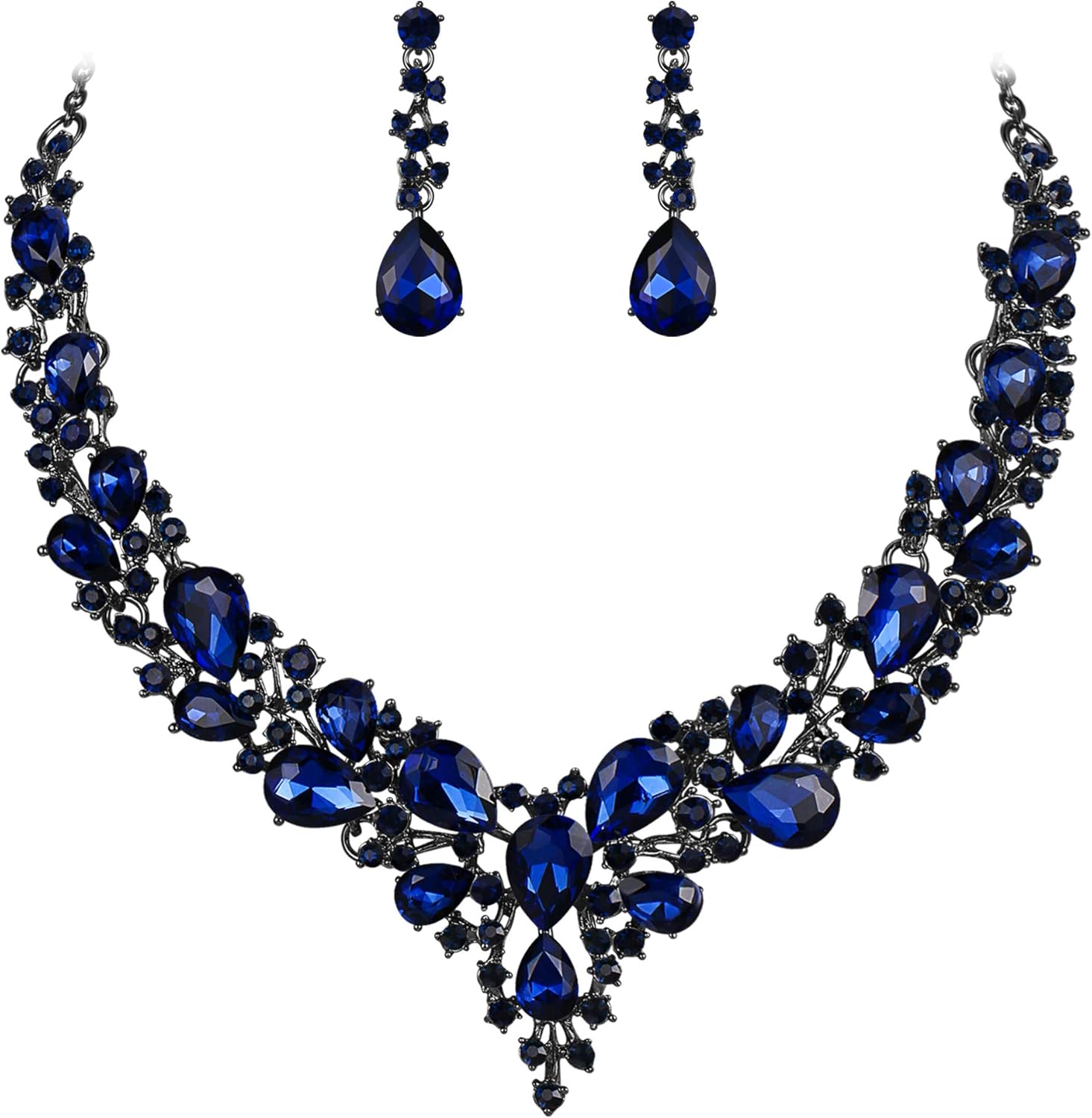 BriLove Women's Wedding Bridal Austrian Crystal Teardrop Cluster Statement Necklace Dangle Earrings Jewelry Set