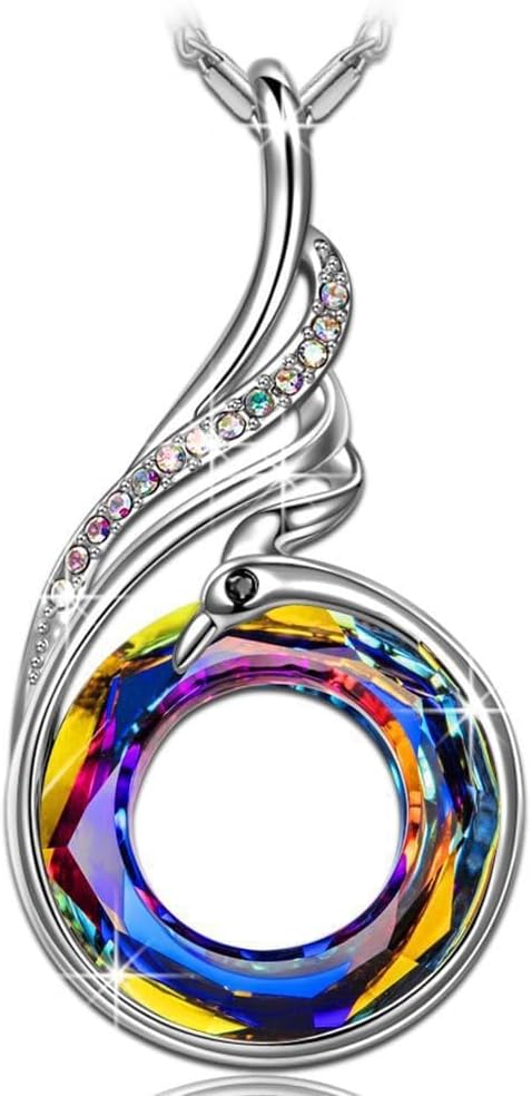"Rise From the Ashes Phoenix Necklace Made with Crystals from Austria,Symbol of Luck and Renewal, Rhinestone Pendent Necklace Wedding Birthday Jewelry Gift