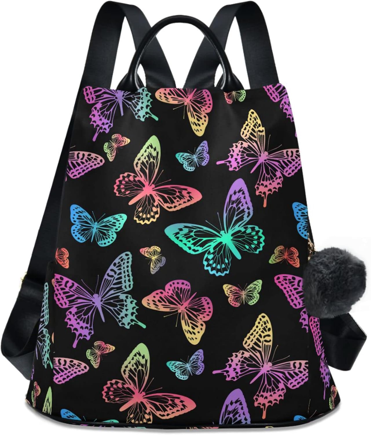 MNSRUU Women Backpack Purse Black Butterflies Backpack for Women Anti-theft Shoulder Bag Carry On Backpack Lightweight Rucksack Fashion Travel Ladies Bags