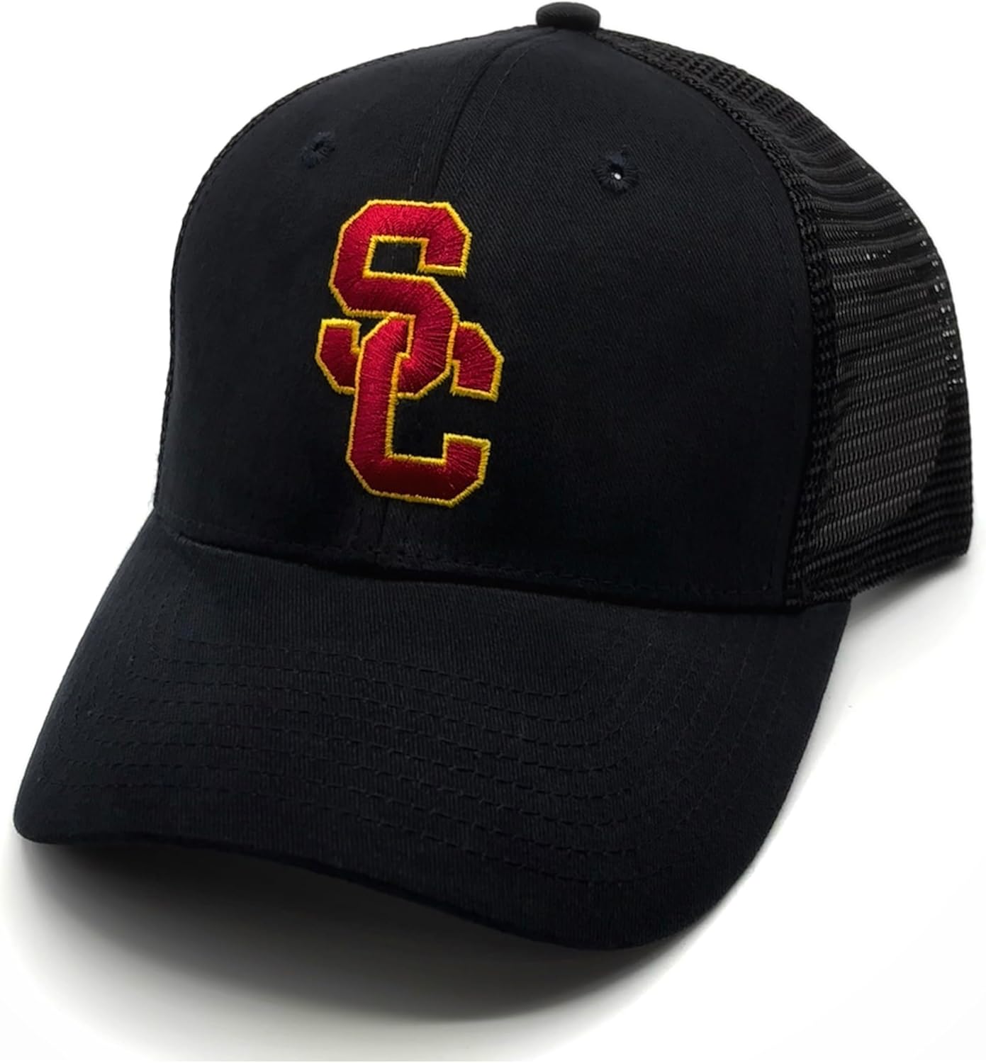 Officially Licensed University Southern Cal Classic Edition Black Mesh Trucker Hat Adjustable Embroidered Team Logo Snapback Cap