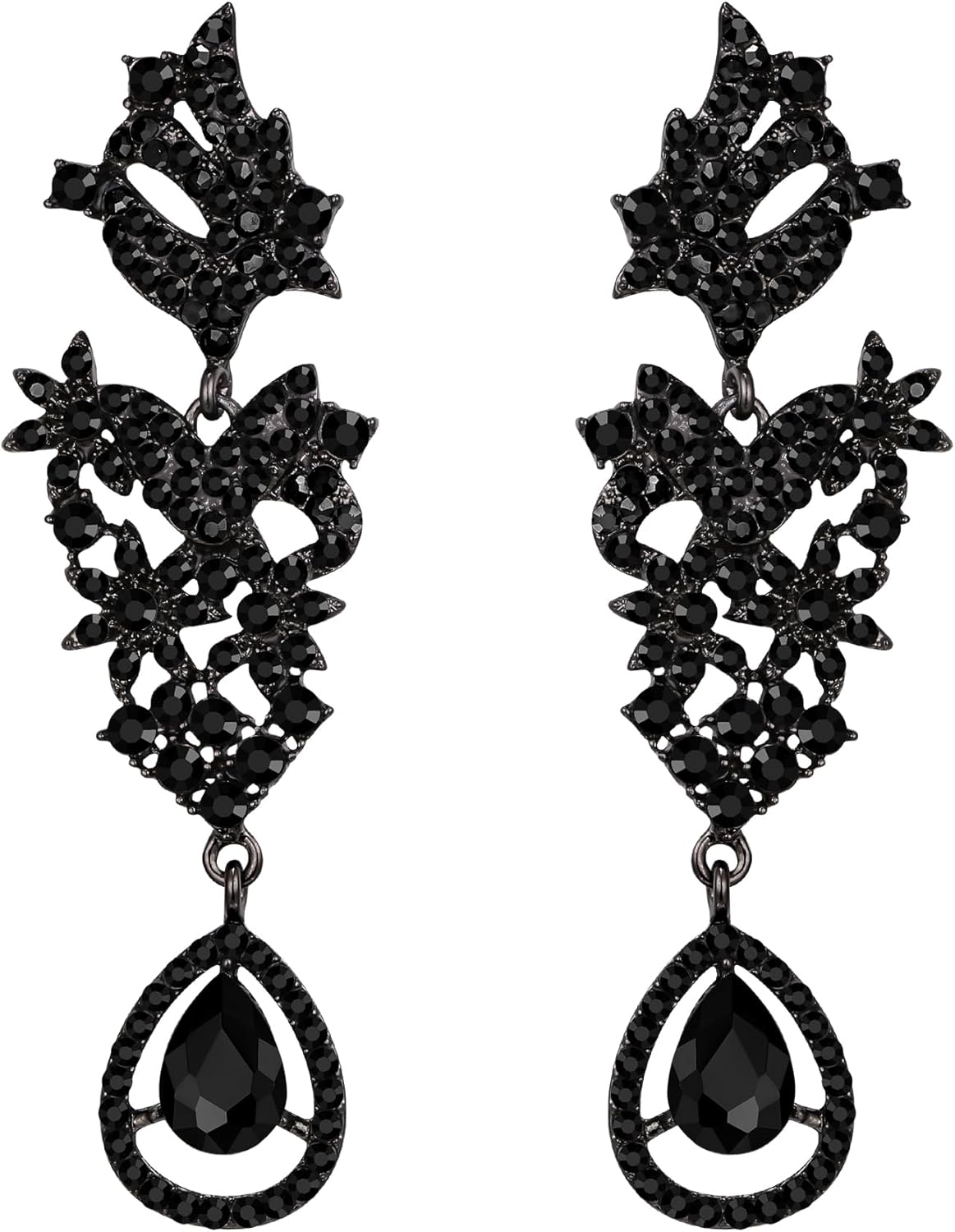 EVER FAITH Statement Dangle Earrings for Women, Costume Wedding Party Jewelry Art Deco Rhinestone Flower Teardrop Boho Chandelier Long Earring