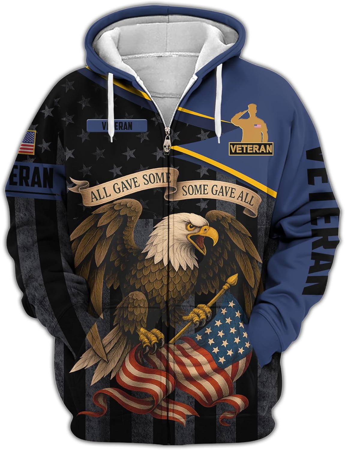 Some Gave All Veteran Zip-Up Hooded Sweatshirt Military Sweatshirts For Men American Eagle Hoodie Patriots Veteran Sweatshirt