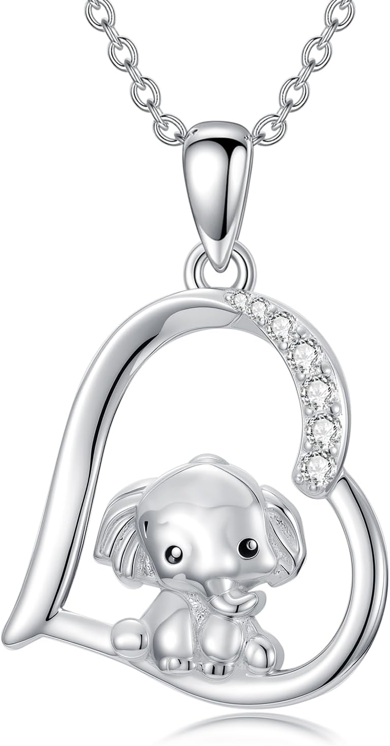 Diamond Elephant Necklaces for Women 925 Sterling Silver Elephant Heart Pendant Necklace with Lab Grown Diamond Cute Animal Jewelry Gift for Mom Wife Girlfriend