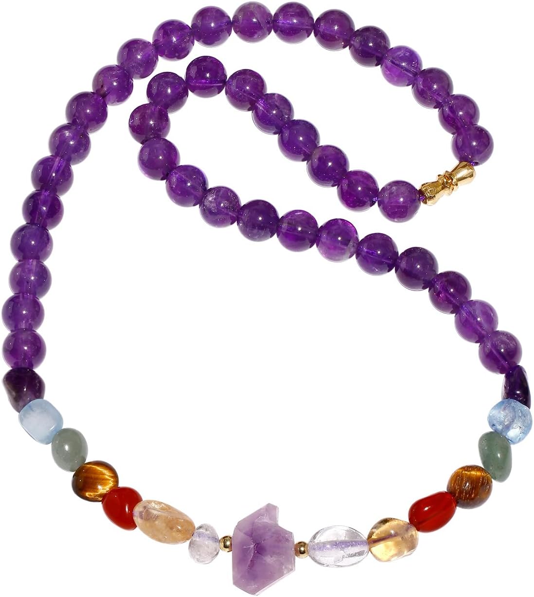 7 Chakra Tumbled Crystals Choker Necklaces for Women 18 Inches Raw Amethyst Beaded Necklace Reiki February Birthstone Jewelry