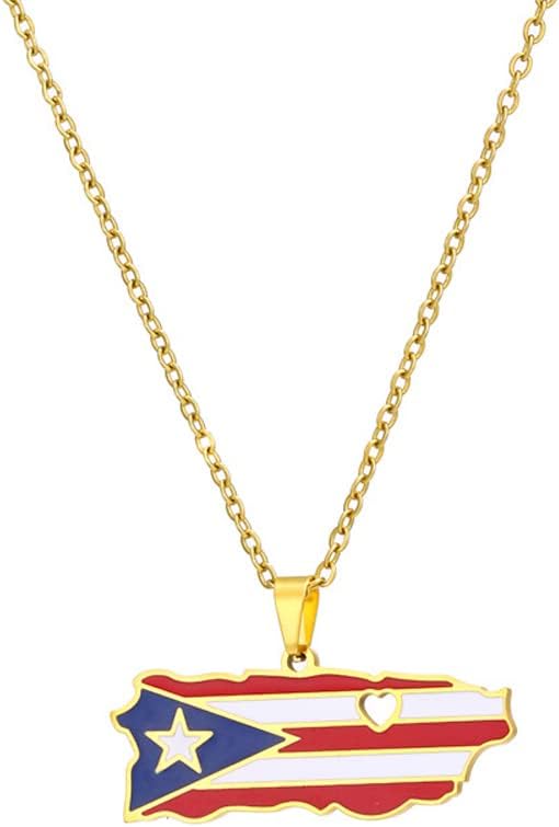 18K Gold Plated/Stainless Steel Puerto Rico Heart Map Pendant Necklace for Unisex Country Jewelry