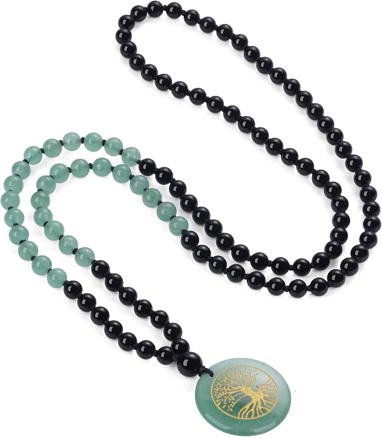 COAI Handmade 108 Mala Beads, Tree of Life Necklace for Men Women, 6mm Green Aventurine Onyx Necklace for Men Women