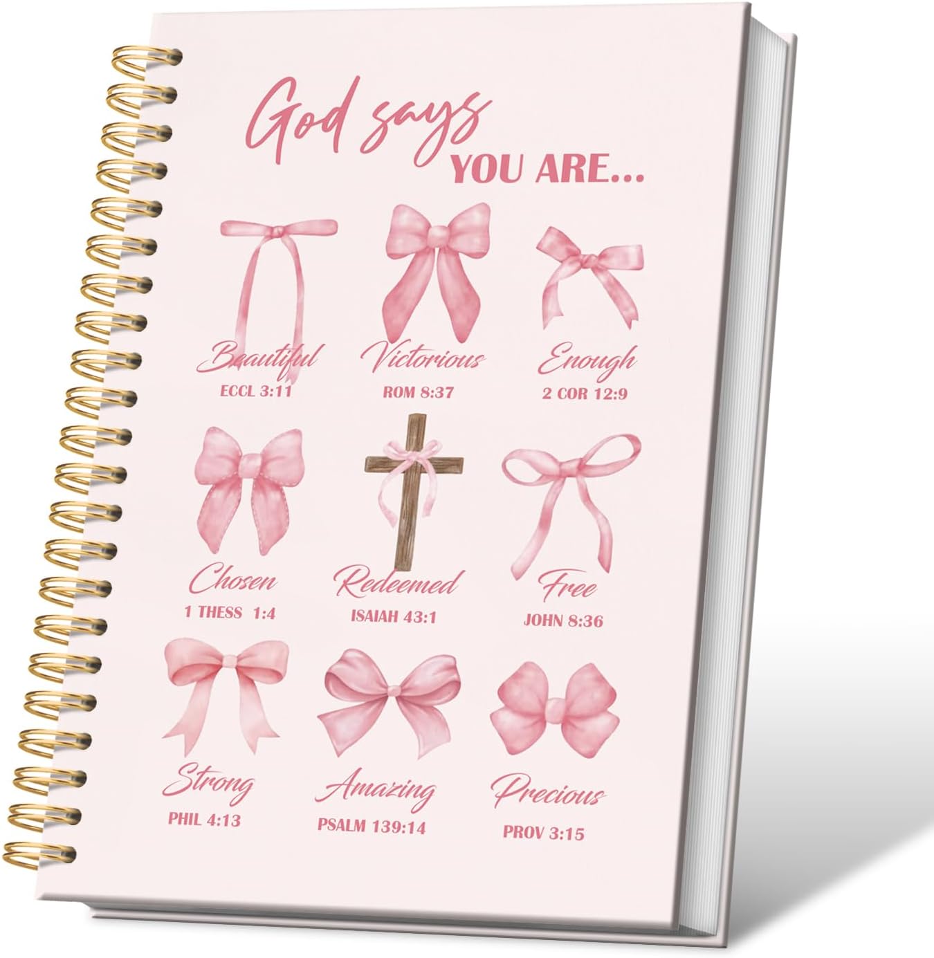 Bible Pink Bow Notebook Journal for Women, Christian Girl Energy Journal, Christian Study Notebook, Cute Preppy Bible Study Spiral Notebook for Bible Notes 5.5 x 8.3