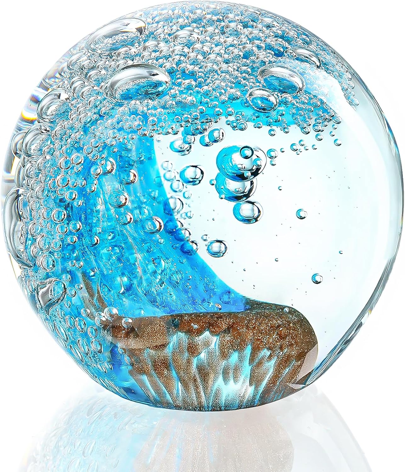 - Unique Spherical Design: Non-perfect round glass crystal paperweight craft with a flat base. Lifelike wave figurine mimics rolling ocean tides—ideal decor for surf lovers and ocean enthusiasts