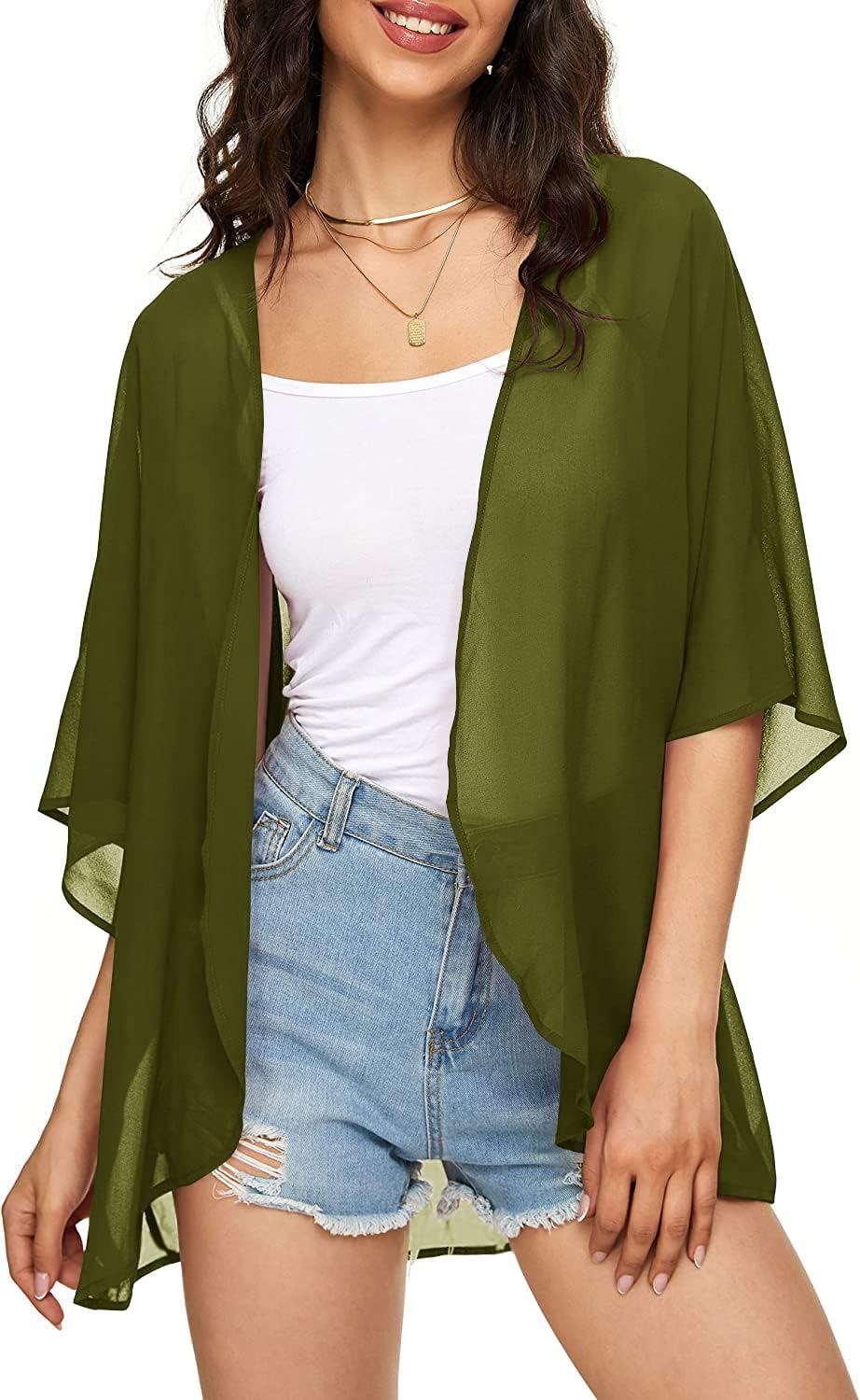 Indian Trendy Women's Solid Puff Sleeve Kimono Cardigan Loose Cover Up Casual Blouse Top Chiffon