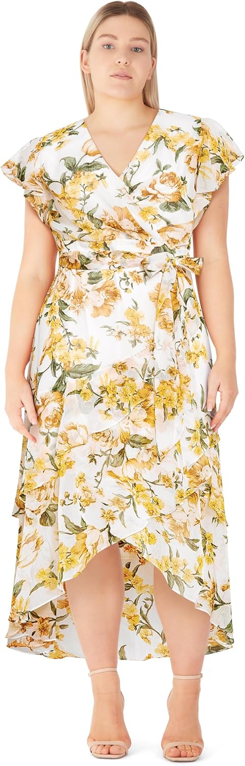 City Chic Womens Cocktail Dress - Flare Tier Print Maxi