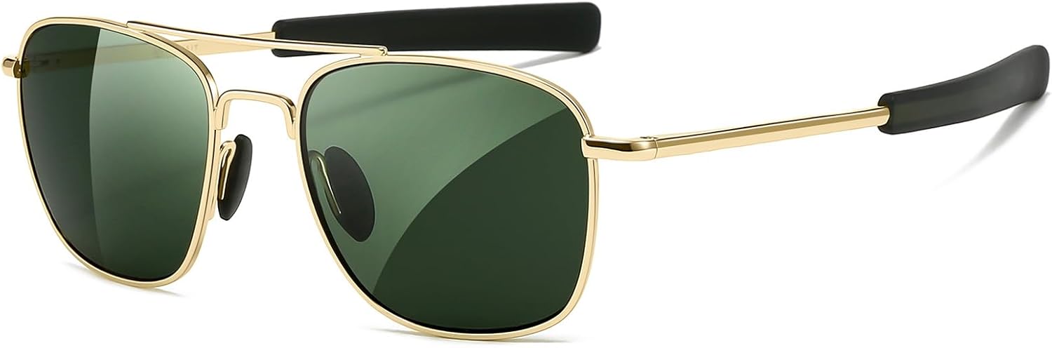 SUNGAIT Premium Military Style Aviator Sunglasses Men Women’s Classic Square Pilot Shades w. Spring Hinge HD Lens