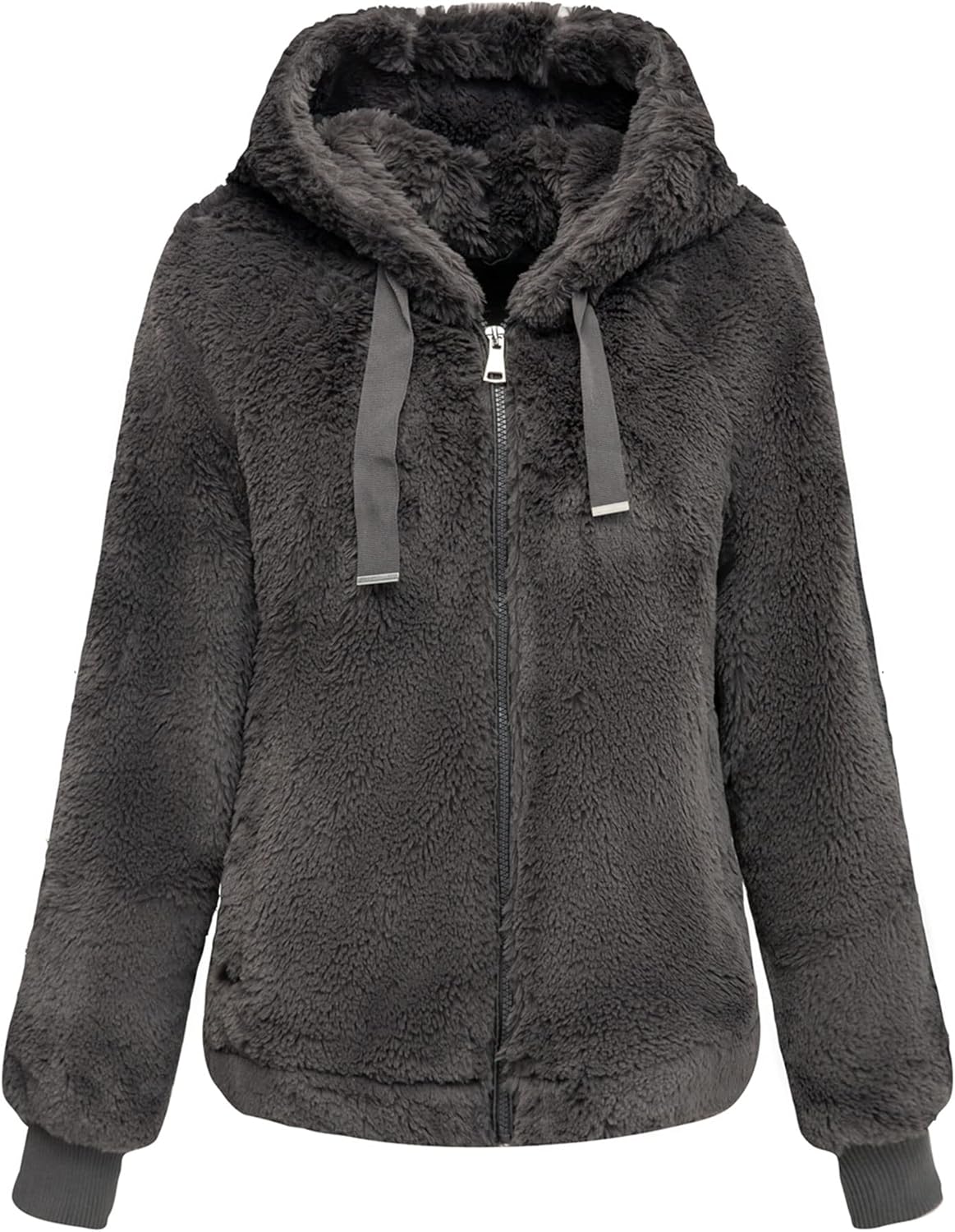 Bellivera Women's Faux Fur Coat Shearling Fluffy Fuzzy Shaggy Hood Sherpa-Lined Fleece Jacket