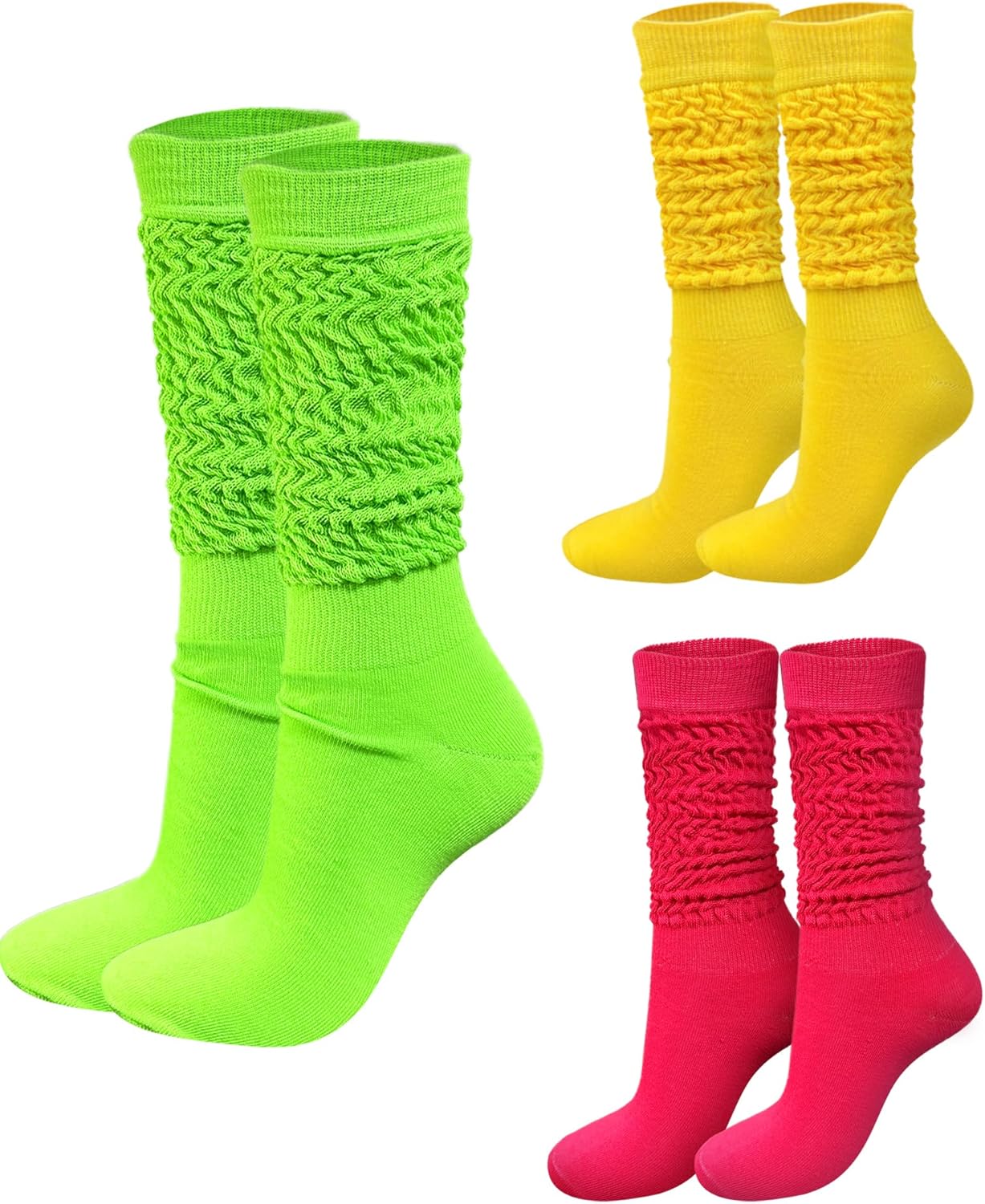 Neon Slouch Scrunch Socks 3 Pairs 80s Accessories for Women, Neon Women's Leg Warmers Heavy Soft Extra Long Socks