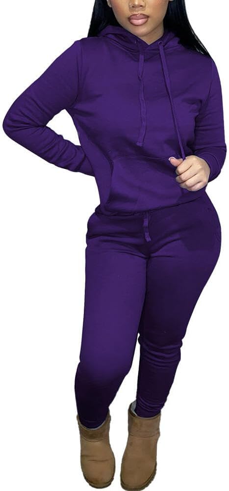 HTD Two Piece Outfits for Women Casual Sweatsuits Set Long Sleeve Hoodie Tracksuit Pullover Jogger Sweat Pants Set