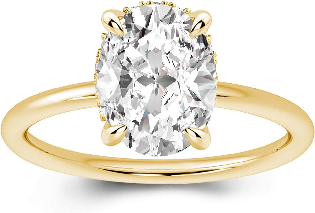 2/3 Carat Moissanite Oval Engagement Ring for Women,Genuine D Color VVS1 Clarity,14K Gold Plated 925 Sterling Silver Solitaire Promise Ring for Wedding,Daily,Travel,Party