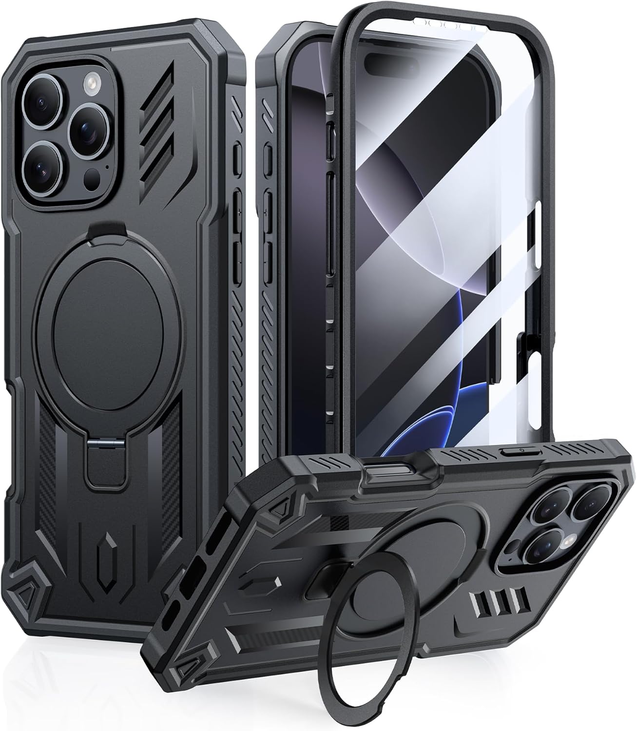 ![FNTCASE for iPhone 16 Pro-Max Case: Magnetic Phone Cases with [Ring Kickstand] [Built-in Screen Protector] [Heavy Duty Military Grade Protection] Shockproof Full Body Protective Hard Cases Black - Image 3](https://m.media-amazon.com/images/I/81CBU2Hc8EL._AC_SL1500_.jpg)