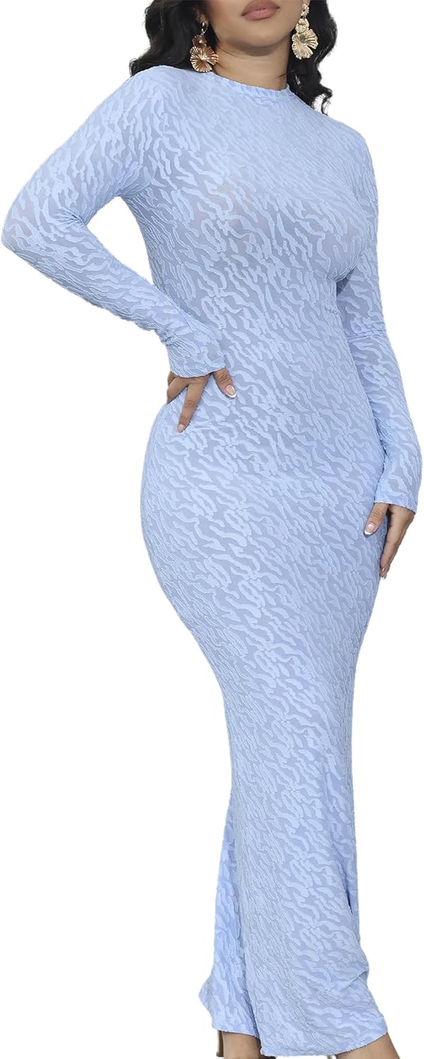 acelyn Women’s Elegant Floral Bodycon Maxi Dress Formal Long Sleeve Mock Neck Wedding Guest Party Cocktail Dress