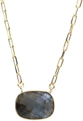 Gempires Cushion Cut Pendant Necklace With 18 Inch Paper Clip Chain Hypoallergenic 14k Gold Plating, Gift for s
