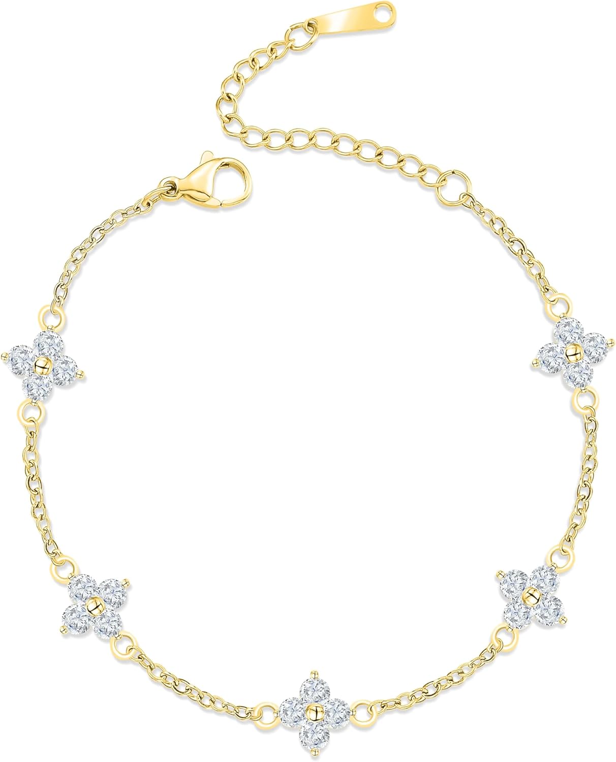 Dainty Clover Bracelet for Women | 18K Gold Plated Cubic Zirconia Link Bracelet | 4 Leaf Lucky Jewelry Gift for Her