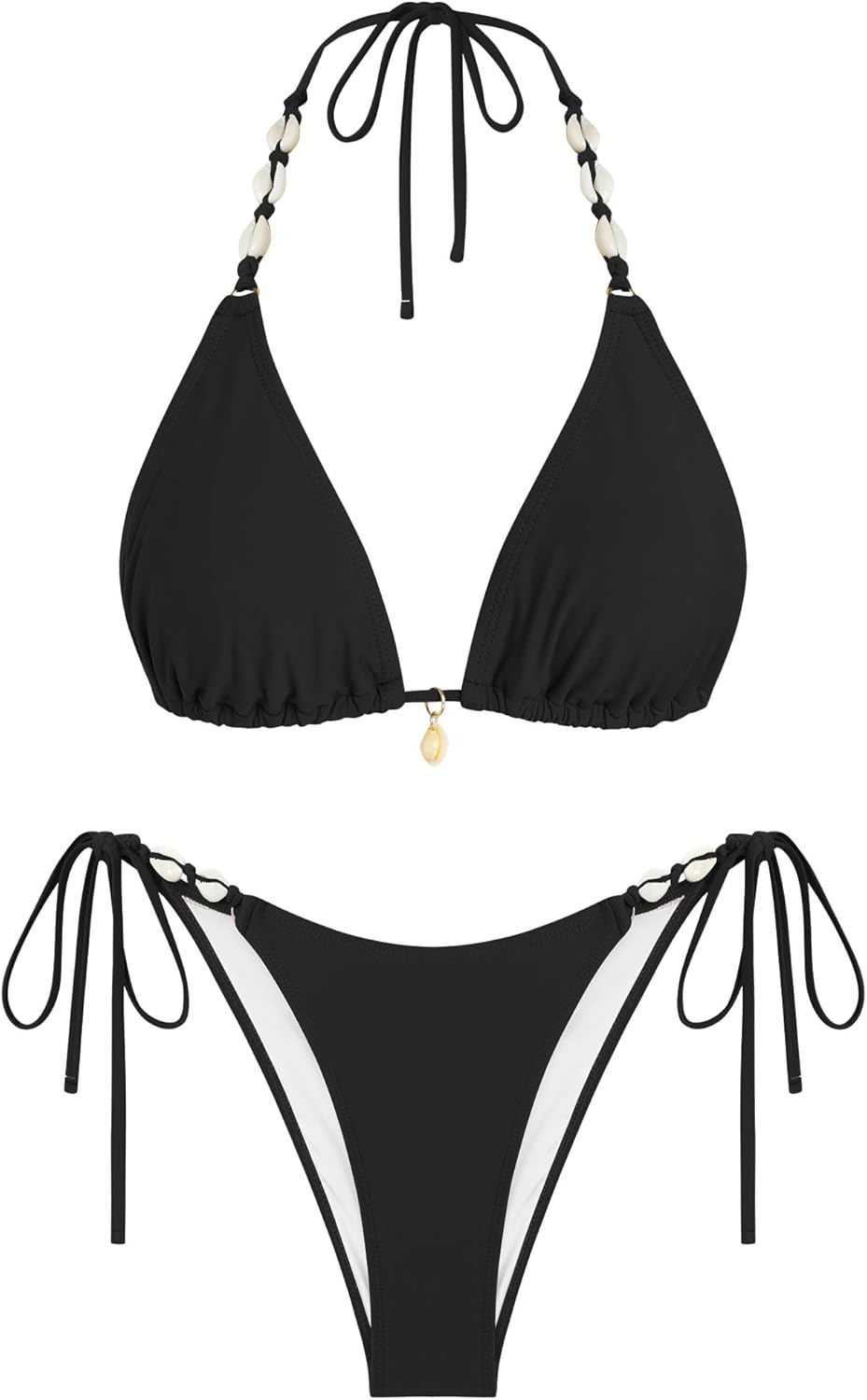 ZAFUL Women's Triangle String Bikini Set Sexy Tie Side Two Piece Swimsuit Seashell Halter Bathing Suit Cute Swimwear